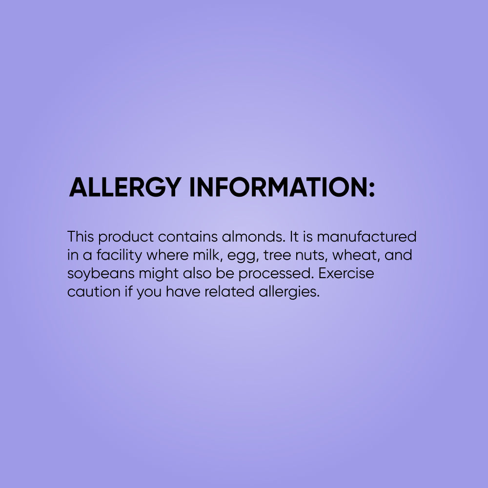 Ingredients: Tapioca blend (tapioca fiber, tapioca syrup, cassava root flour), protein blend (brown rice protein, organic pea protein), almonds, organic cane sugar, palm oil*, natural flavors, decaffeinated dark roast coffee, medium chain triglycerides, sea salt, sunflower lecithin.