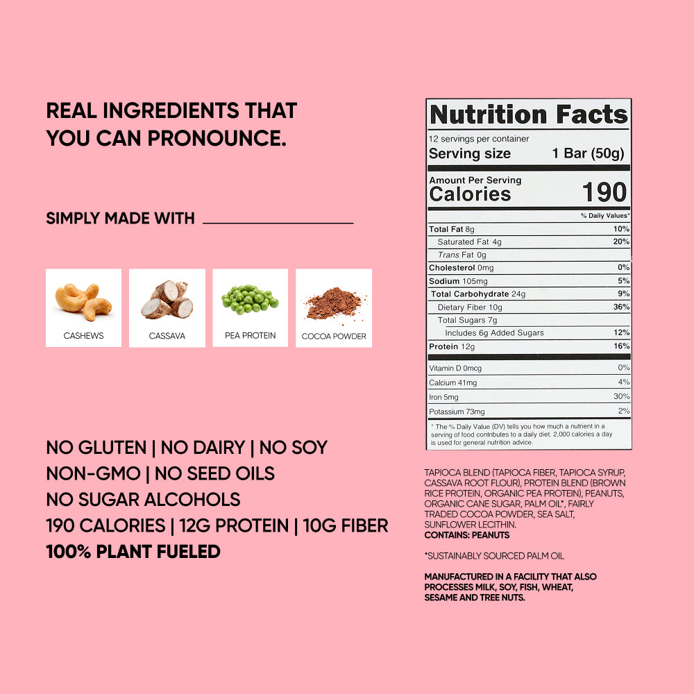 Tapioca Fiber and Cassava Blend, Plant Fueled Protein Blend (Whole Grain Rice Protein, Organic Pea Protein), Roasted Almond Butter, Cane Sugar, Palm Oil, Natural Flavors, Sea Salt, Sunflower Oil, Sunflower Lecithin