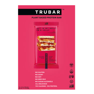 You’ll swear the TRUBAR Get in My Belly PB & Jelly protein bar tastes too good to be healthy, but it’s true! With 12 grams of vegan protein in every bar it will become your go-to source for nutritious plant fueled protein.