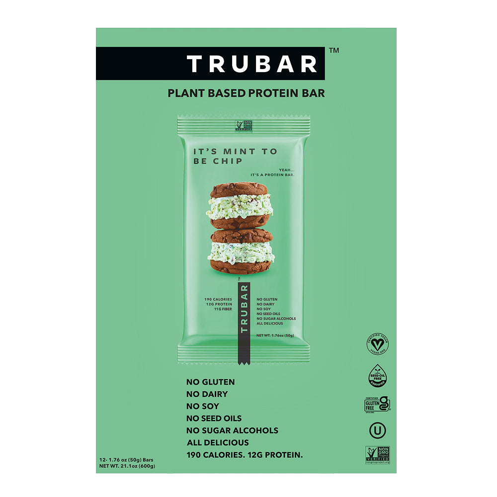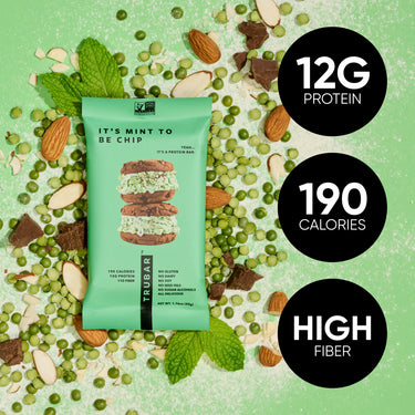 The TRUBAR It's Mint to Be Chip vegan protein bar is a delicious-tasting, good-for-you snack bar.