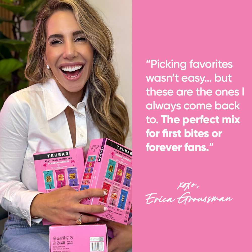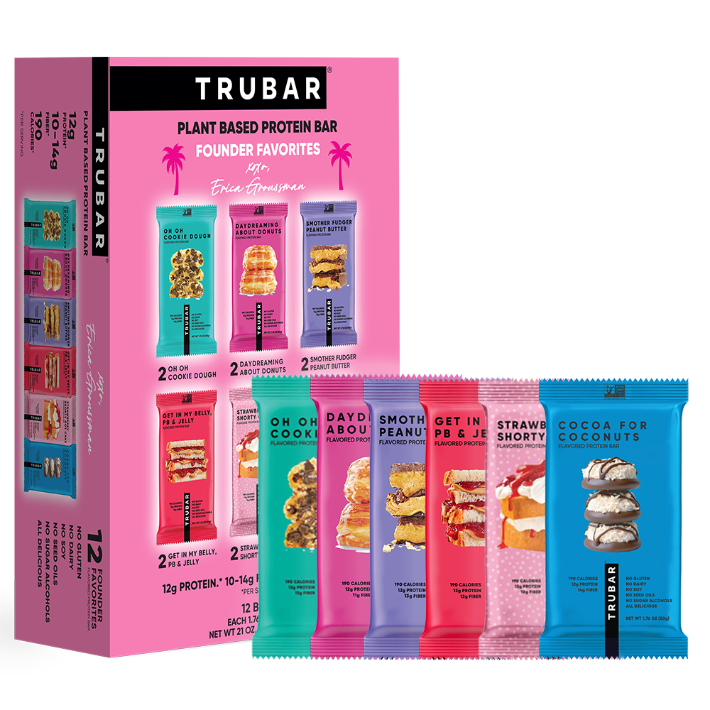 Meet the flavors Erica always comes back to. This curated lineup brings together 6 of our most-loved, dessert-inspired bars, perfect for first-timers and TRUBAR fans alike. Each bite delivers indulgent flavor with clean, plant-based ingredients you can feel good about.